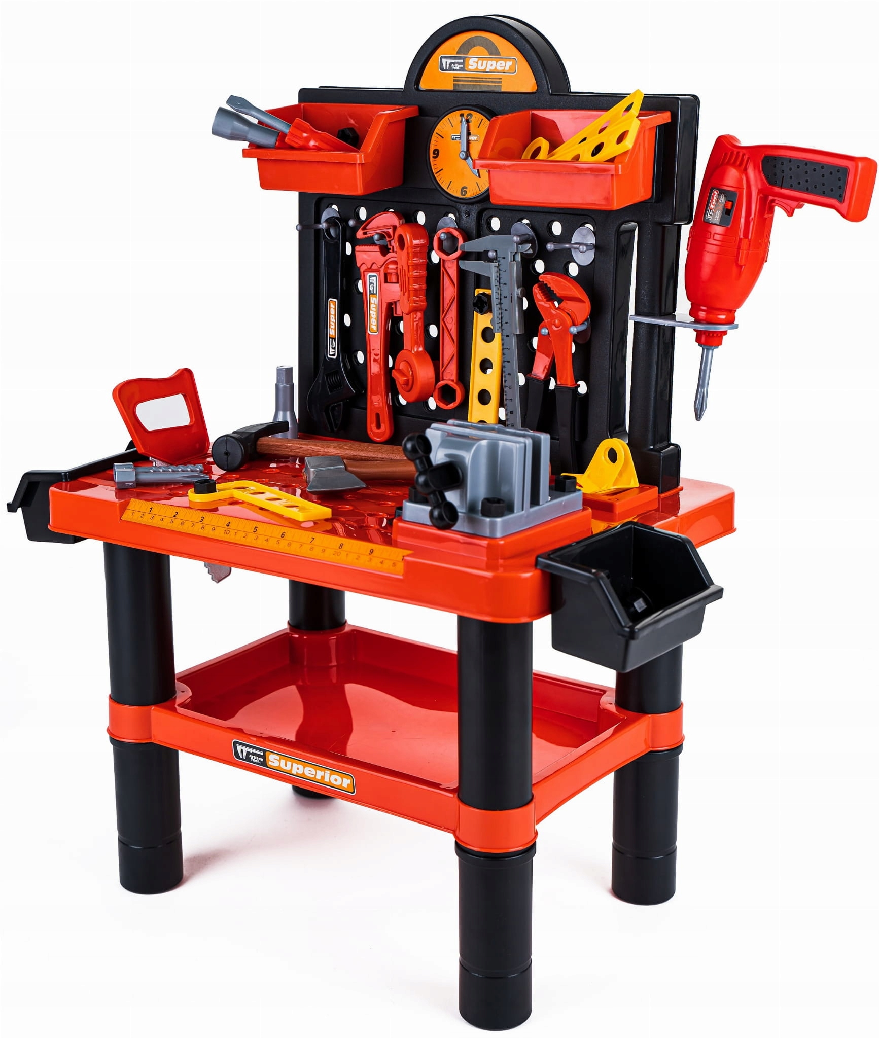 Warsztat z pewnością stanie się miejscem wielogodzinnej zabawy. Wszystkie narzędzia są lekkie, bezpieczne i wygodne dla małych rączek. Liczne schowki pomagają utrzymać porządek w trakcie i po zabawie. Narzędzia doskonale imitują swoje rzeczywiste odpowiedniki.