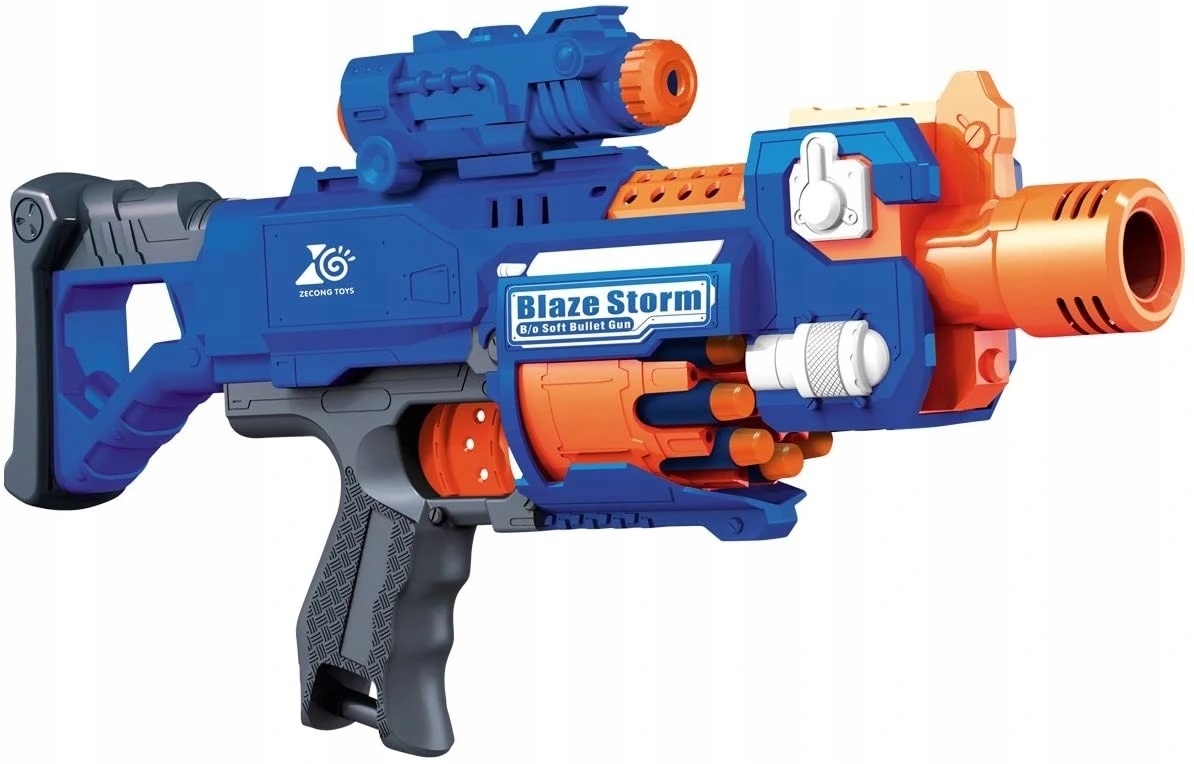 Karabin bębenkowy Blaze Storm pokochają zarówno fani tych zabawek, jak i początkujący użytkownicy. Ta zabawka ma wszystko czego potrzebujesz, żeby "ustrzelić przeciwnika" i wygrać!
