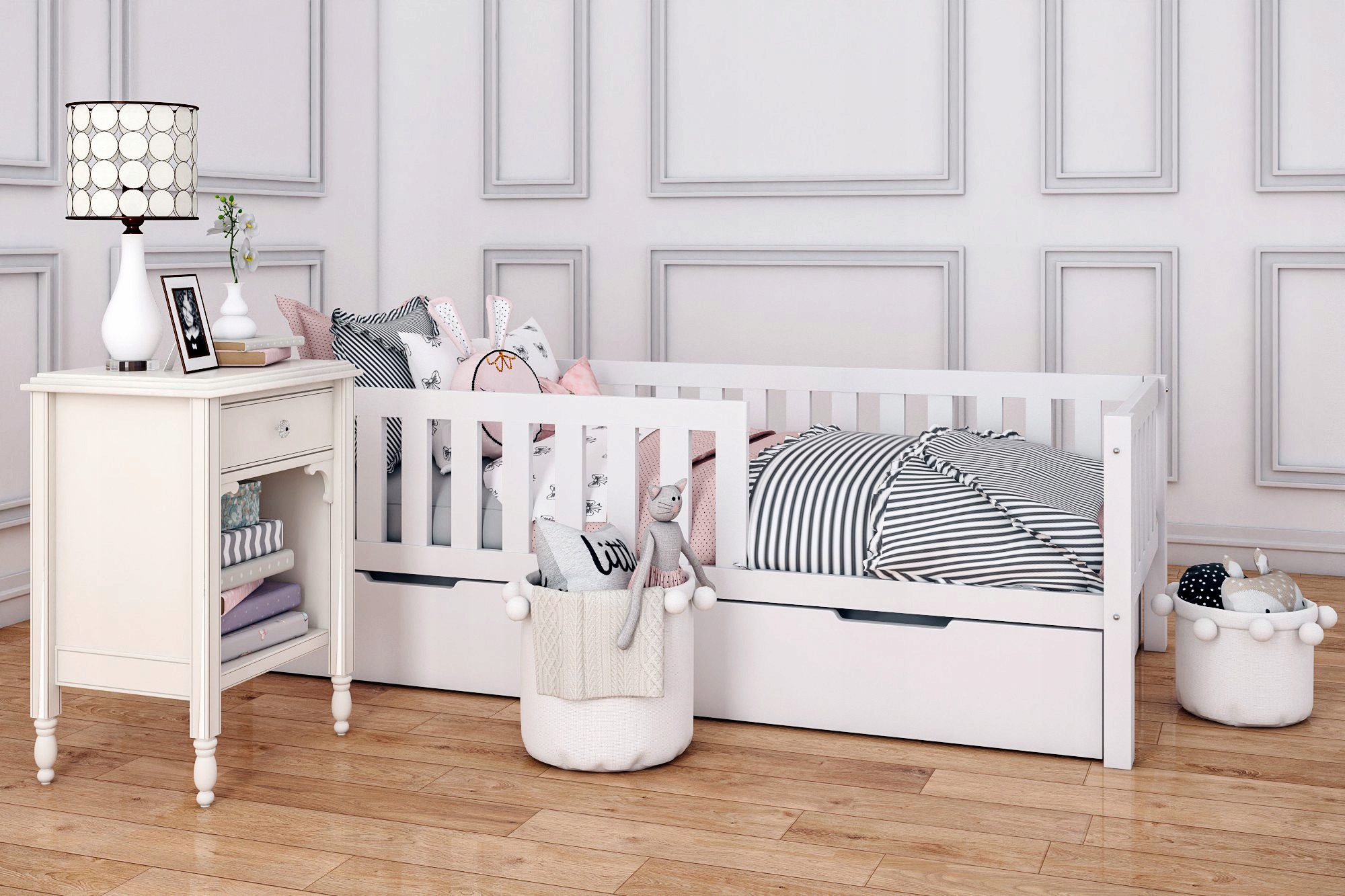 - Przedstawione łóżko jest w kolorze białym