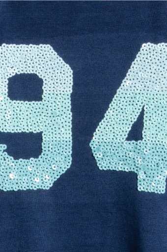 Топ (труси-боксери) для дівчинки темно-синього кольору з паєтками, оздоблений таким же матеріалом. Подвійна строчка внизу сорочки.