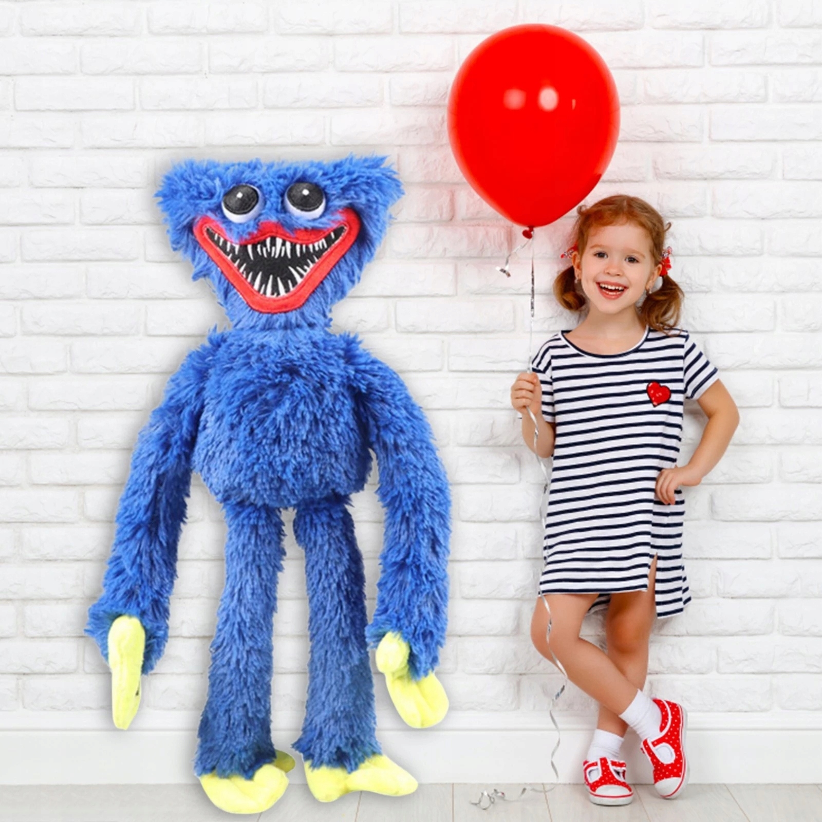 Zabawka Huggy Wuggy składa się z prototypowych postaci w horrorze ucieczki pokoju Poppy Playtime. Poppy Playtime to przygodowa gra logiczna, w której Huggy Wuggy jest okrutnym stworzeniem o nieznanym celu. Czy boisz się tego wielkiego potwora o niebieskich ustach?