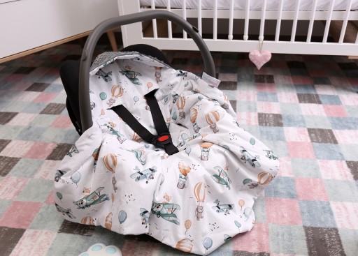 Безпечніше одягнути малюка в легкий одяг і укутати від холоду нашою ковдрою. Ковдра має отвори для ременів безпеки, що дозволить легко покласти ковдру в люльку / автокрісло.
