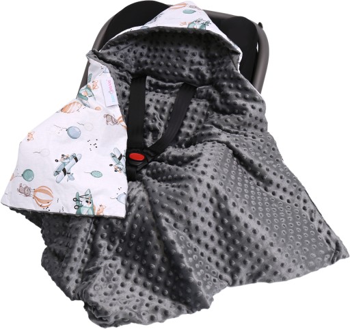 Двостороння ковдра PREMIUM з капюшоном і утеплювачем - ідеально підходить для будь-якого автокрісла, коляски, для прогулянки або подорожі.