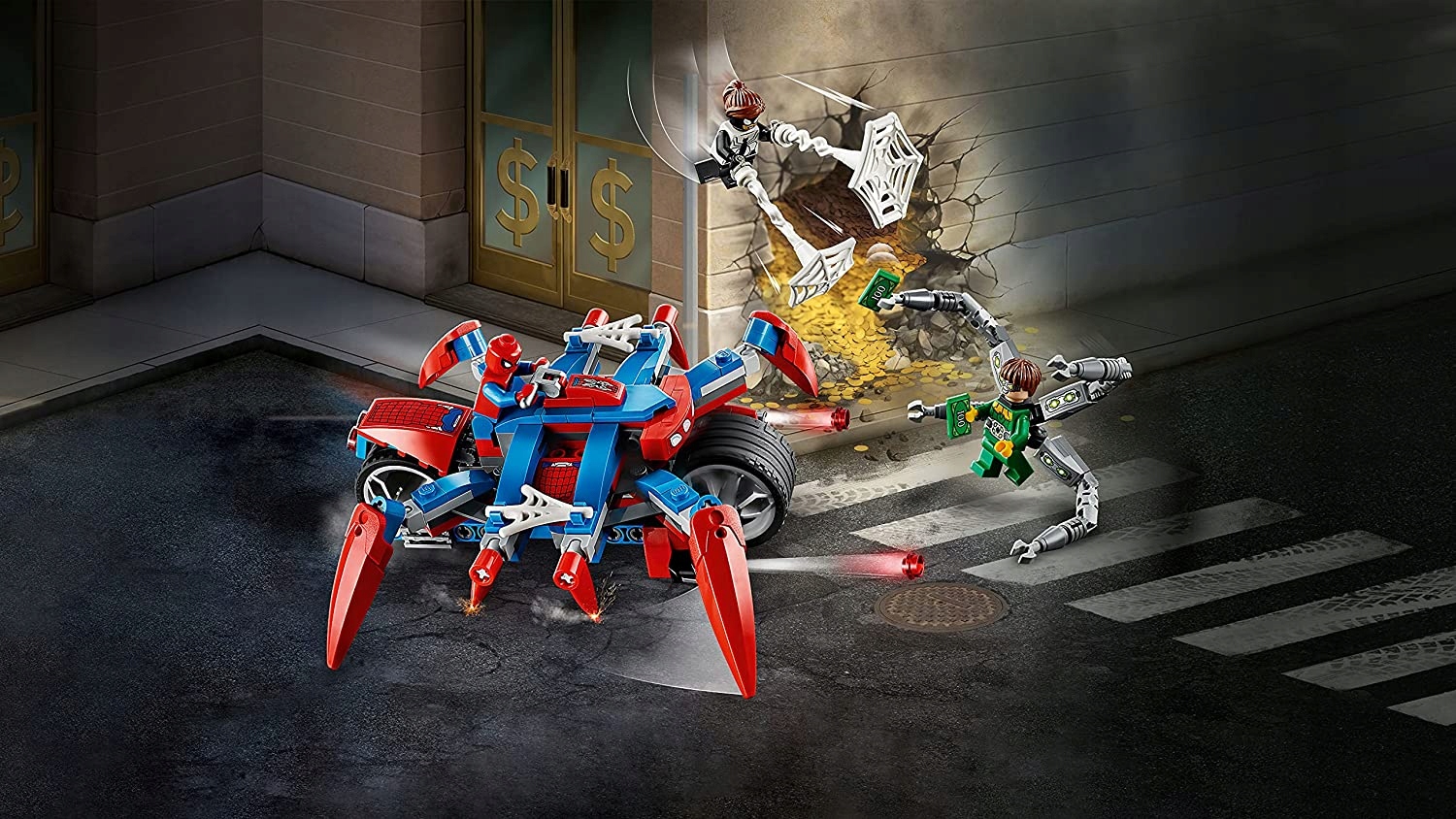 - Doc Ock has four mechanical arms. Spider-Man and Spider-Girl, on the other hand, have a spider bike with stud shooters and spider webs for throwing… and that's just the beginning! Who knows what new adventures await kids in this inspirational set?