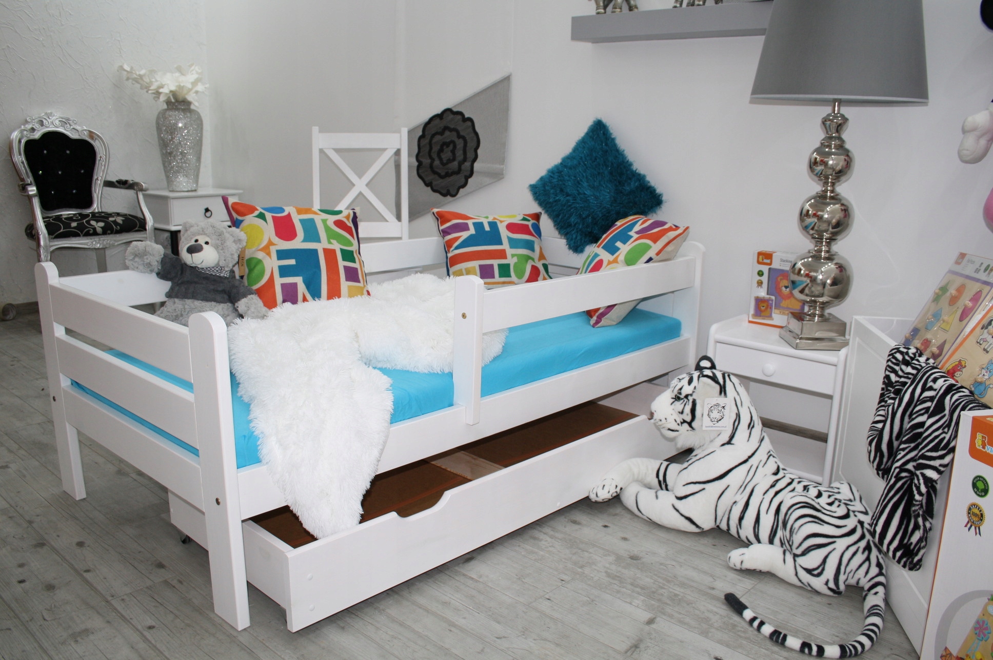 Łóżeczko KUBUŚ dla bezpieczeństwa twojego maluszka ma zamontowaną barierkę chroniącą przed wypadnięciem ! ! ! ! ! Barierka jest uniwersalna, można ją zamontować z obydwu stron łóżeczka. Łóżko posiada również barierkę od strony ściany. Ponadto łóżko doskonale prezentuje się z szufladą z naszej oferty – które znajdziecie Państwo na innych naszych aukcjach.