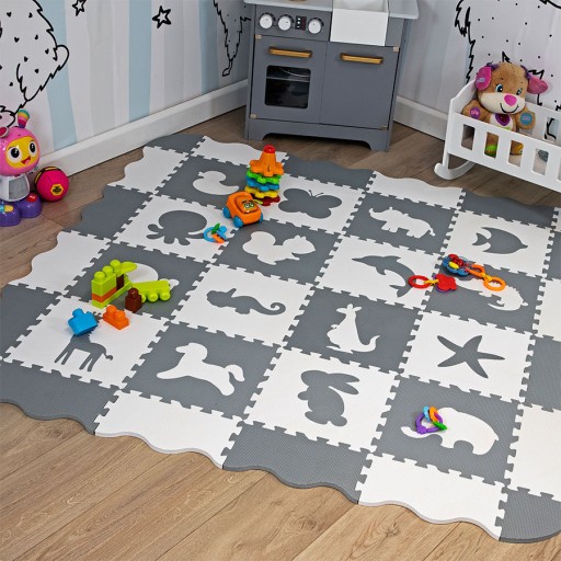 По-перше, килимок виготовлений з безпечної для дітей піни EVA, яка забезпечує теплоізоляцію від холодної підлоги та амортизує можливе падіння на тверду підлогу. Крім того, його дуже легко підтримувати в чистоті. Не вбирає пролиті рідини. Досить протерти поверхню килимка мокрою ганчіркою, щоб успішно видалити з нього весь бруд. Ідеально підходить для дітей, схильних до алергії, оскільки не вбирає пил і кліщів. Матеріал не ковзає, тому вам не доведеться хвилюватися, що килимок зрушиться.