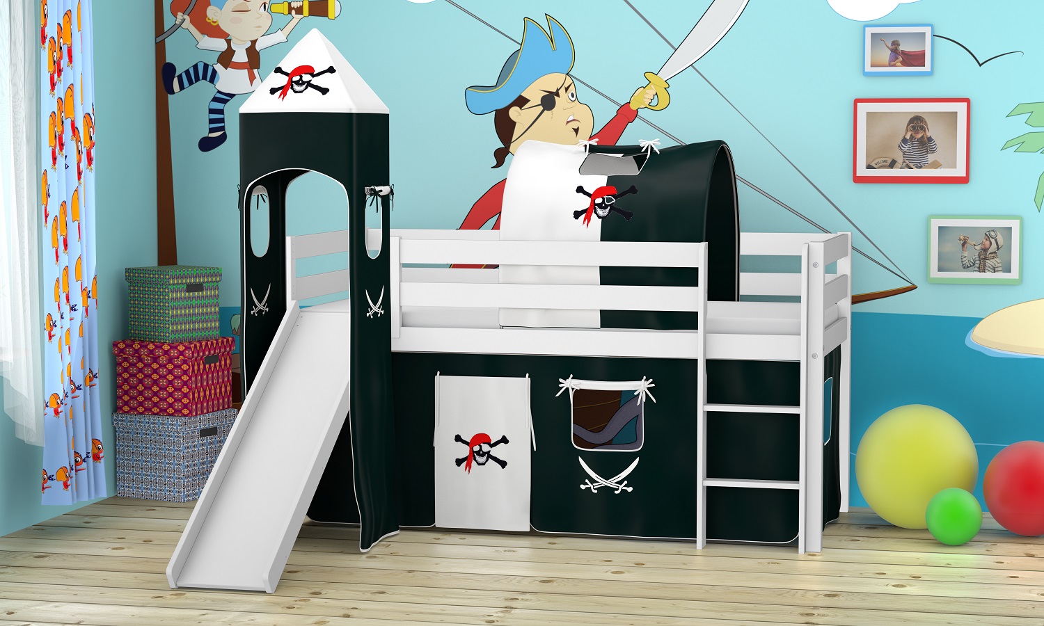 Łóżko piętrowe Marco, dzięki wytrzymałej konstrukcji i użyciu wysokiej jakości materiałów przy produkcji stanowi idealną propozycję do pokoju twojego dziecka. Konstrukcja zapewnia mu bezpieczny sen przez całą noc, a profilowany stelaż, który znajduje się w zestawie gwarantuje odpowiedni komfort użytkowania. Model ten wyposażony został w zjeżdżalnię, która dodatkowo umożliwia zabawę i czerpanie większej radości z mebla.
