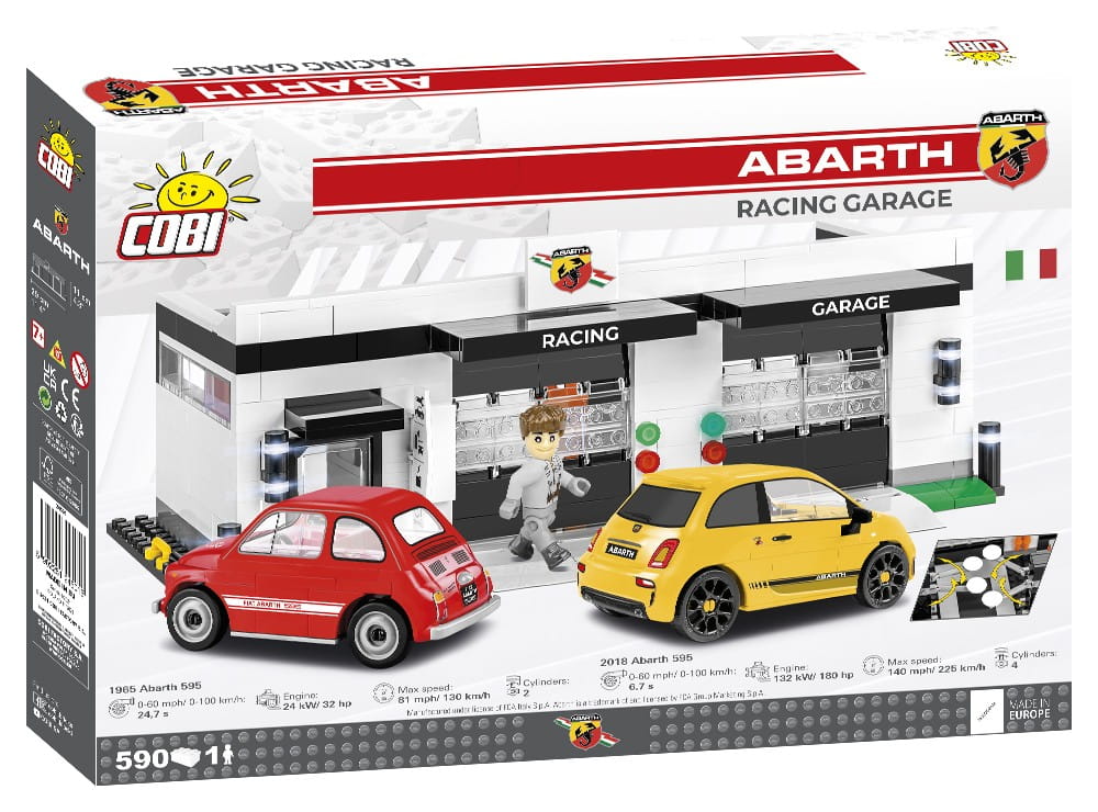 Abarth is an Italian sports car manufacturer and tuner based in Turin. Established in 1949, the company became famous for improving serial cars, mainly the FIAT brand. The Abarth 595 Competizione car is a sporty version of the wildly popular Fiat 500, which premiered in 2007. Modern and extremely fashionable design, attracts the eye and stands out in the automotive industry. The car's appearance refers to the legendary 500, also present in this set, which motorized Italy many years ago.