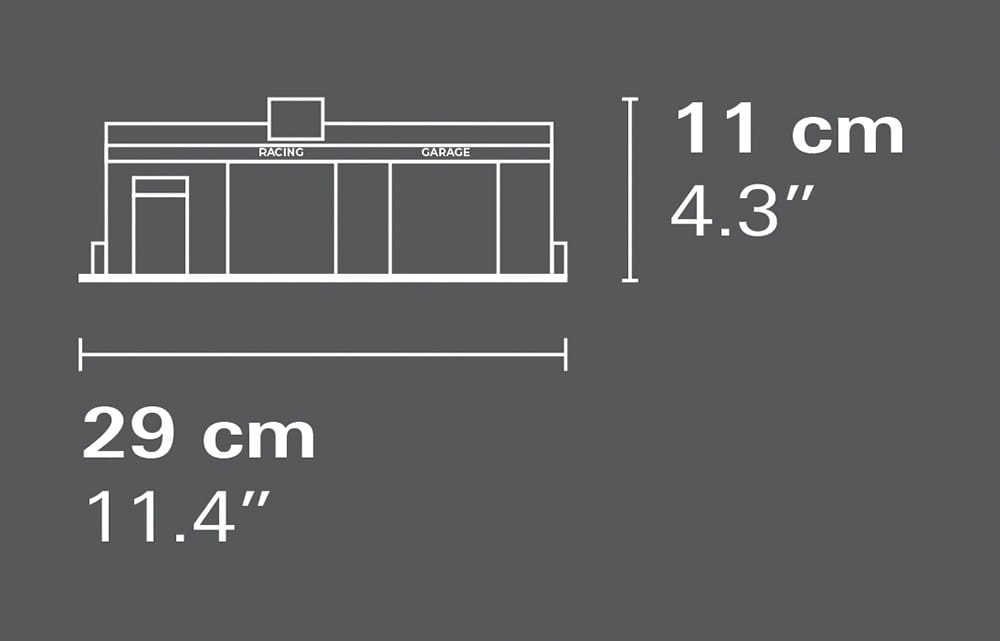 Garage dimensions: (L x H): 29 cm (11.4 ") x 11 cm (4.3")