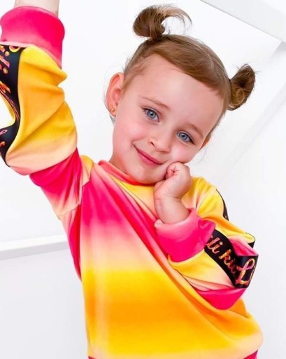 Спортивний костюм для дівчинки з велюру, розроблений і виготовлений відомим польським виробником Lili Kids. Якість виготовлення та матеріали преміум-класу, як і личить польській сімейній компанії. Гарантія унікальності, короткі серії не є масовим виробництвом. Модна та зручна тканина велюр.