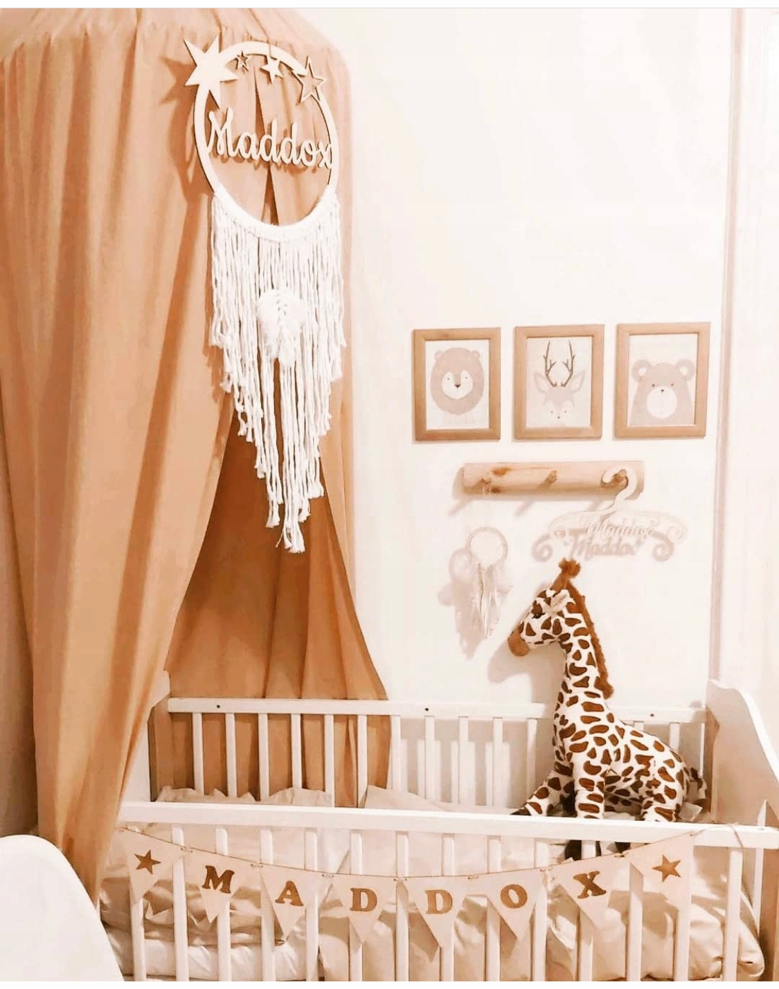The canopy can be hung over the baby's cot, and later it can be used as a teepee tent in the preschooler's room. If dirty, it can be removed from the rack and washed.
