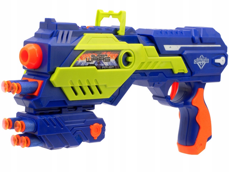 Strzałki wykonane są z bardzo lekkiej i miękkiej pianki zakończonej miękką końcówką gumową zabawa pistoletem jest w pełni bezpieczna.