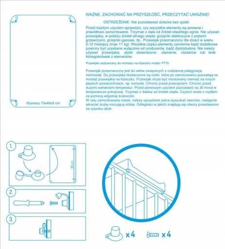 Подовжувач має жорстке дно і штифти, що блокують ковзання. Завдяки цьому його можна встановити на дитяче ліжечко. М'яка підкладка робить прокручування зручним і приємним. Додатковою перевагою є оббивка з найякіснішої сертифікованої фольги - вона безпечна для ніжної шкіри дитини і легко чиститься. Перед покупкою надбудови необхідно виміряти ліжечко - надбудови розраховані на ліжка з шириною матраца 60 см. Ви можете купити чохол для надставки.