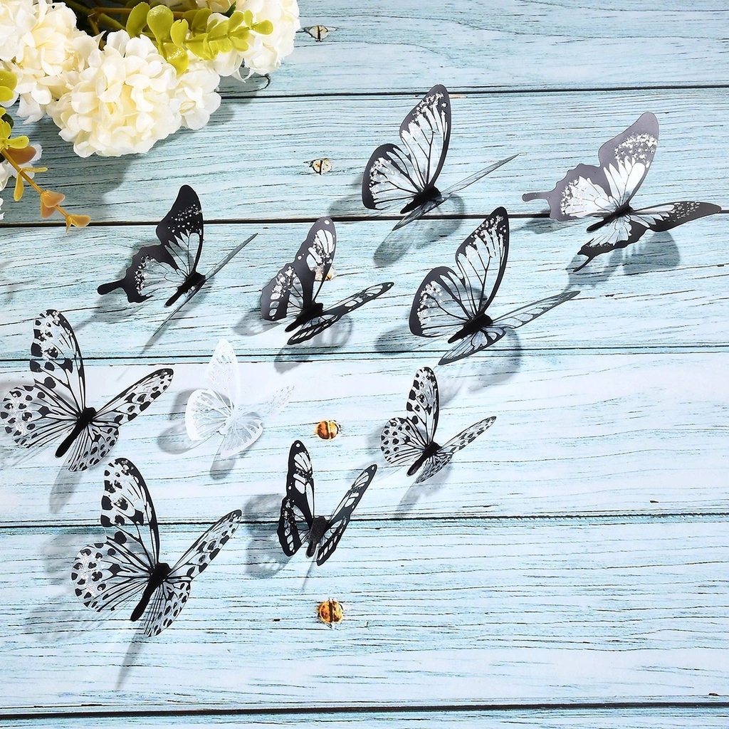 NAKLEJKI MOTYLE 3D BIAŁE I CZARNE - KOMPLET 18 SZTUK