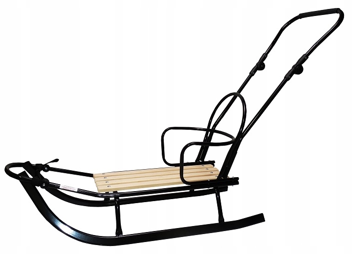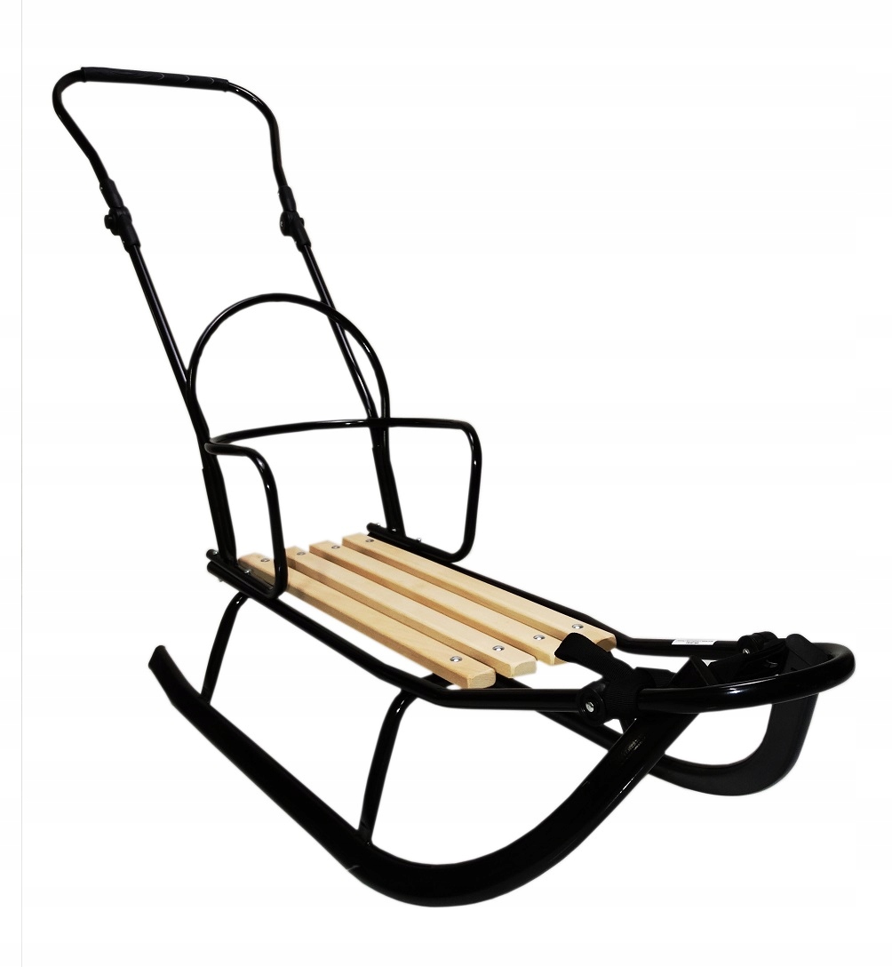 Sanki posiadają regulowany pchacz, dzięki któremu rodzic pcha sanki a dziecko widzi wszystko przed sobą.