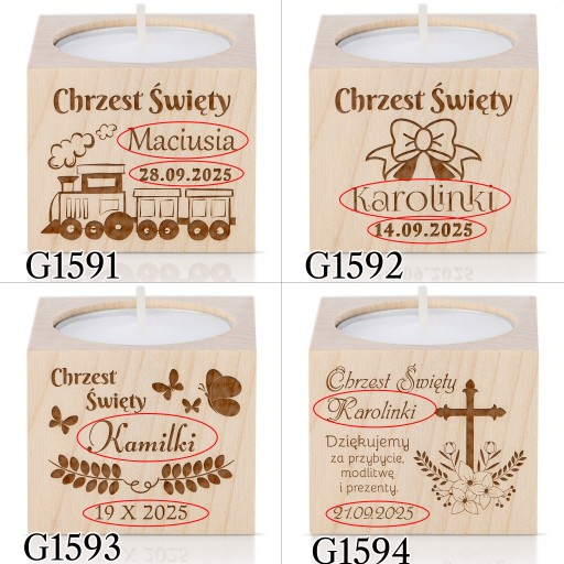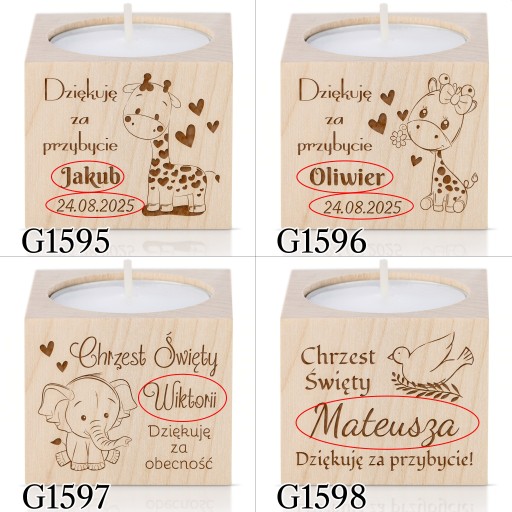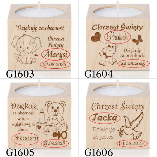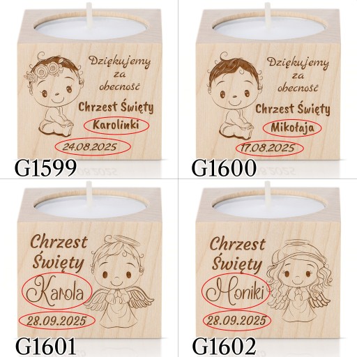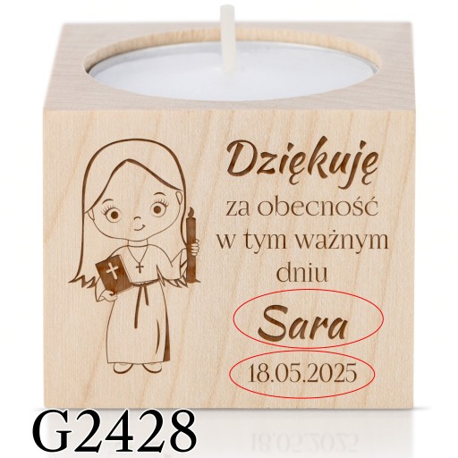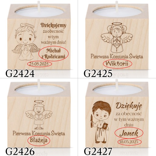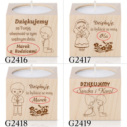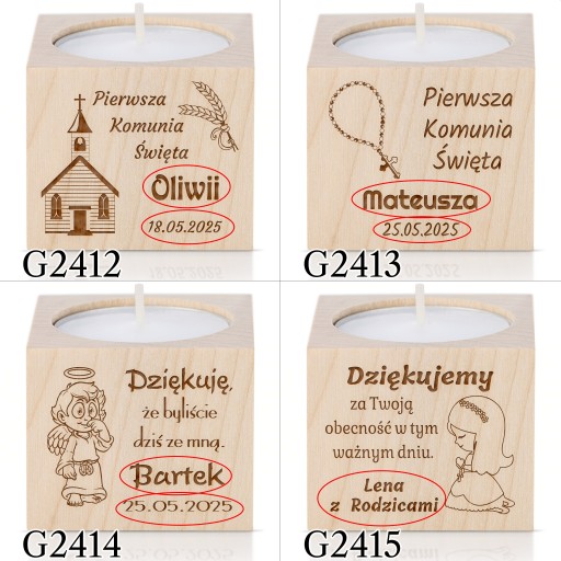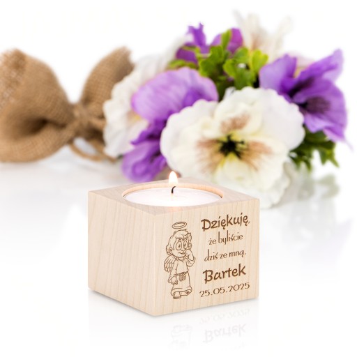 Період причастя вже близько!Дерев'яний свічникз можливістю персоналізації — ідеальна ідея дляподарунок для гостейщоб відзначити цей особливий день.
