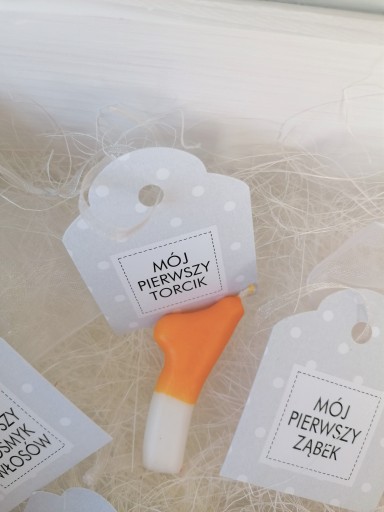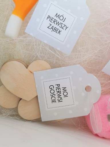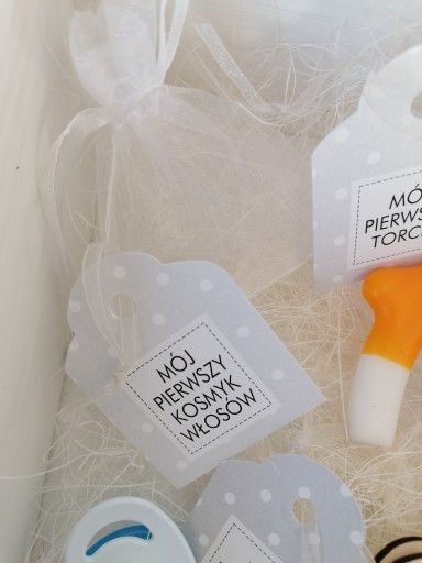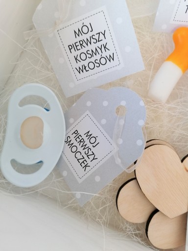 Додатково всередині два білих тюлевих мішечка для першого зуба і першого пасма волосся.