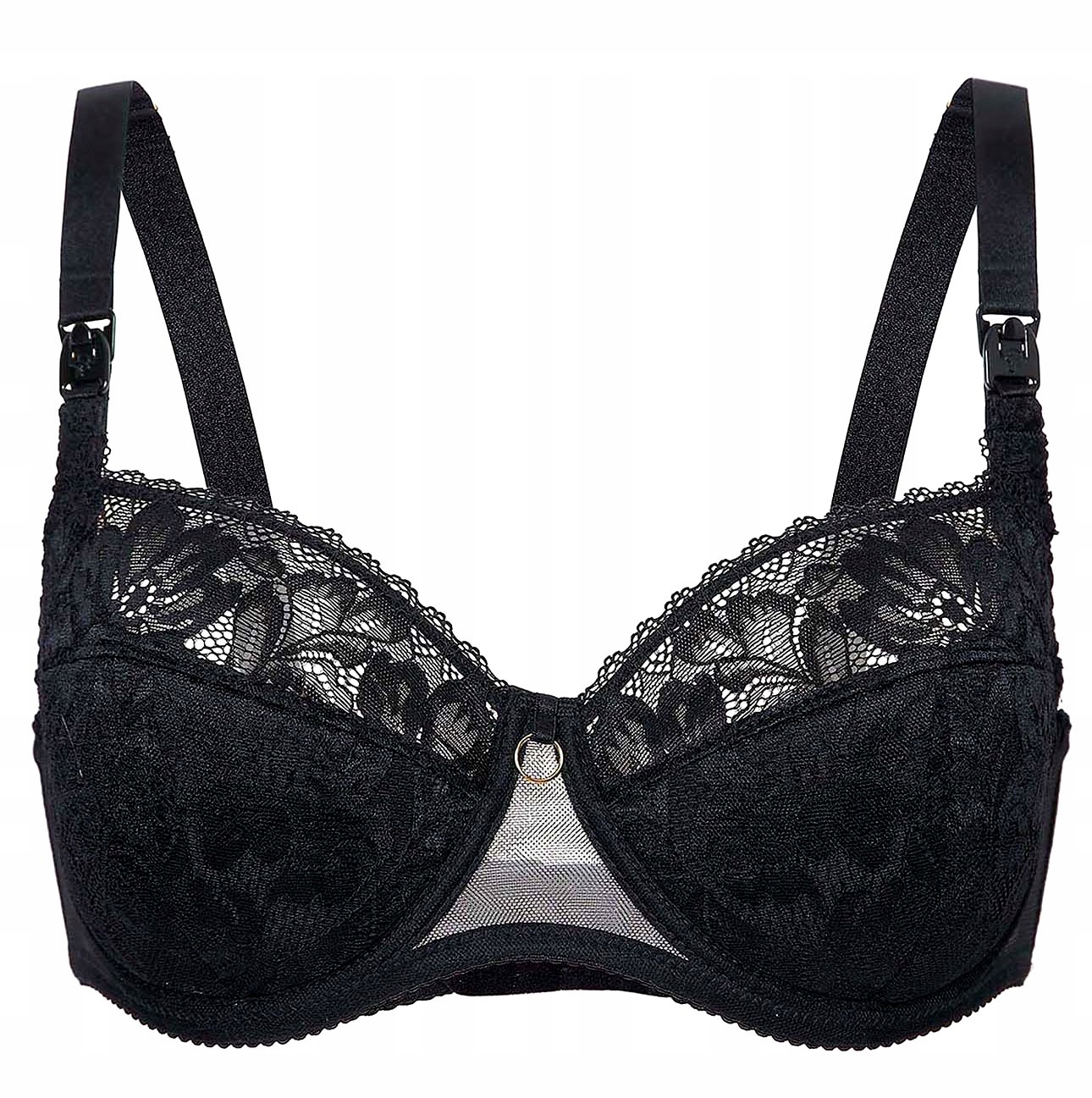 Half-padded / semi-soft maternity and nursing bra with underwires, made of beautiful and soft lace, stiffened 2/3 of the height with elastic corset foam, which will perfectly support even the large and heavy breasts of every nursing mother. Innovative shape nickel-free underwires prevent pressure on the breasts. Fastening the cup with Fildan Easy-Off clips ensures comfort when feeding your baby, giving you the ability to detach it with one hand.