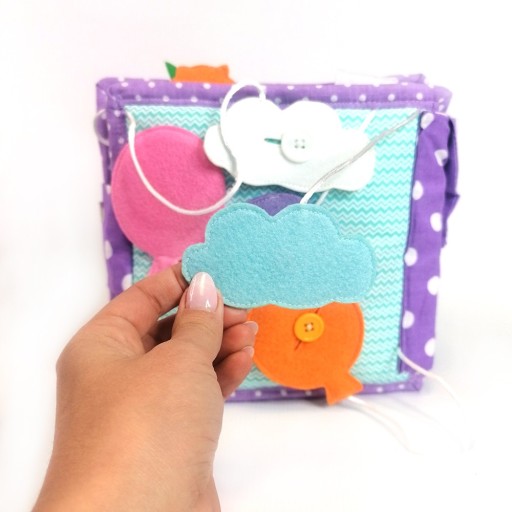 6. повітряні кулі і хмари, застібаються на липучки і кнопки. Одну з повітряних кульок пересувають на нитці. Усі елементи мають рядки.