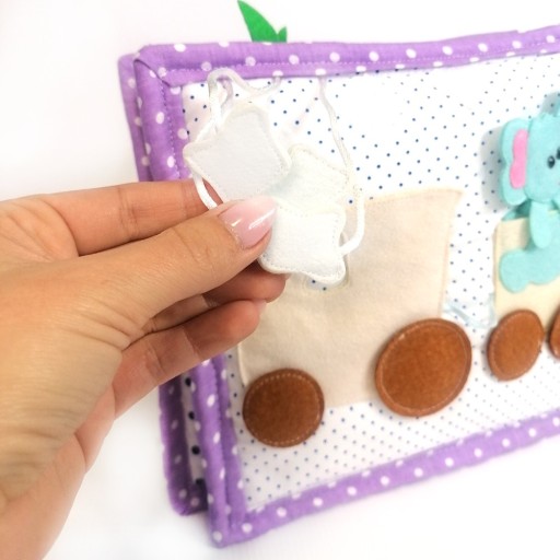 Книжка має довгу застібку-липучку, завдяки якій можна прикріпити бейбік до коляски, сумочки або автокрісла. Застібка має вшиту товсту гуму, яка легко розтягується.