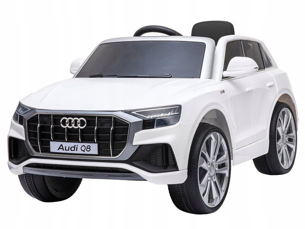 - Najnowsza wersja licencjonowanego Audi Q8 posiada 2 mocne silniki 12V 12000RPM + 1 x akumulator żelowy 12V 4,5Ah + PILOT 2,4Ghz dla rodzica.