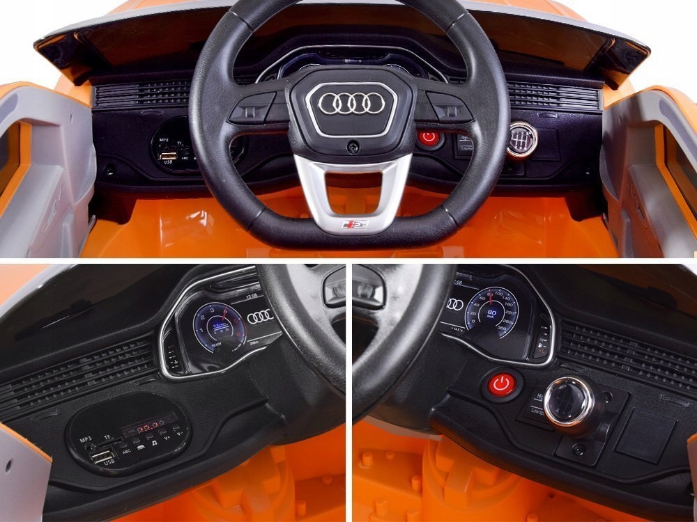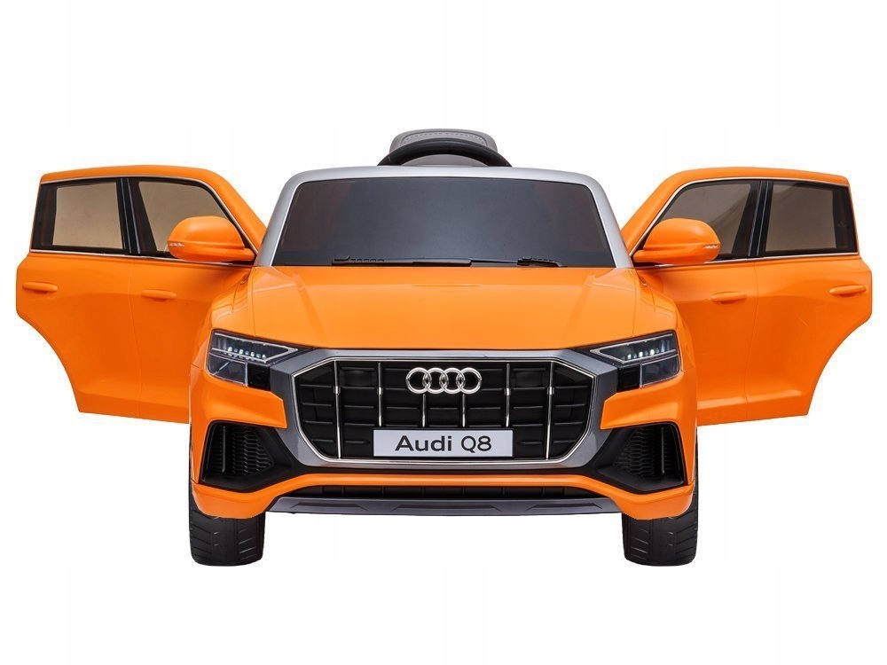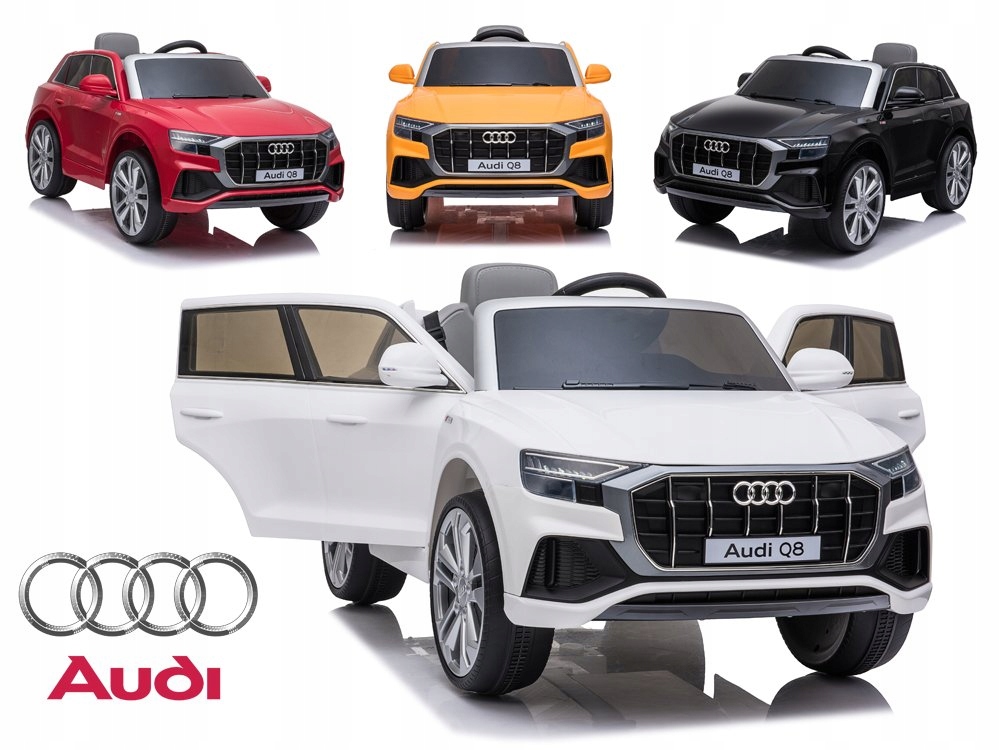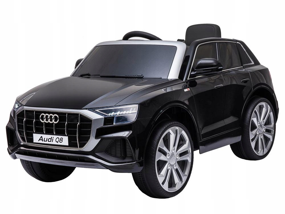 - Najnowsza wersja licencjonowanego Audi Q8 posiada 2 mocne silniki 12V 12000RPM + 1 x akumulator żelowy 12V 4,5Ah + PILOT 2,4Ghz dla rodzica.