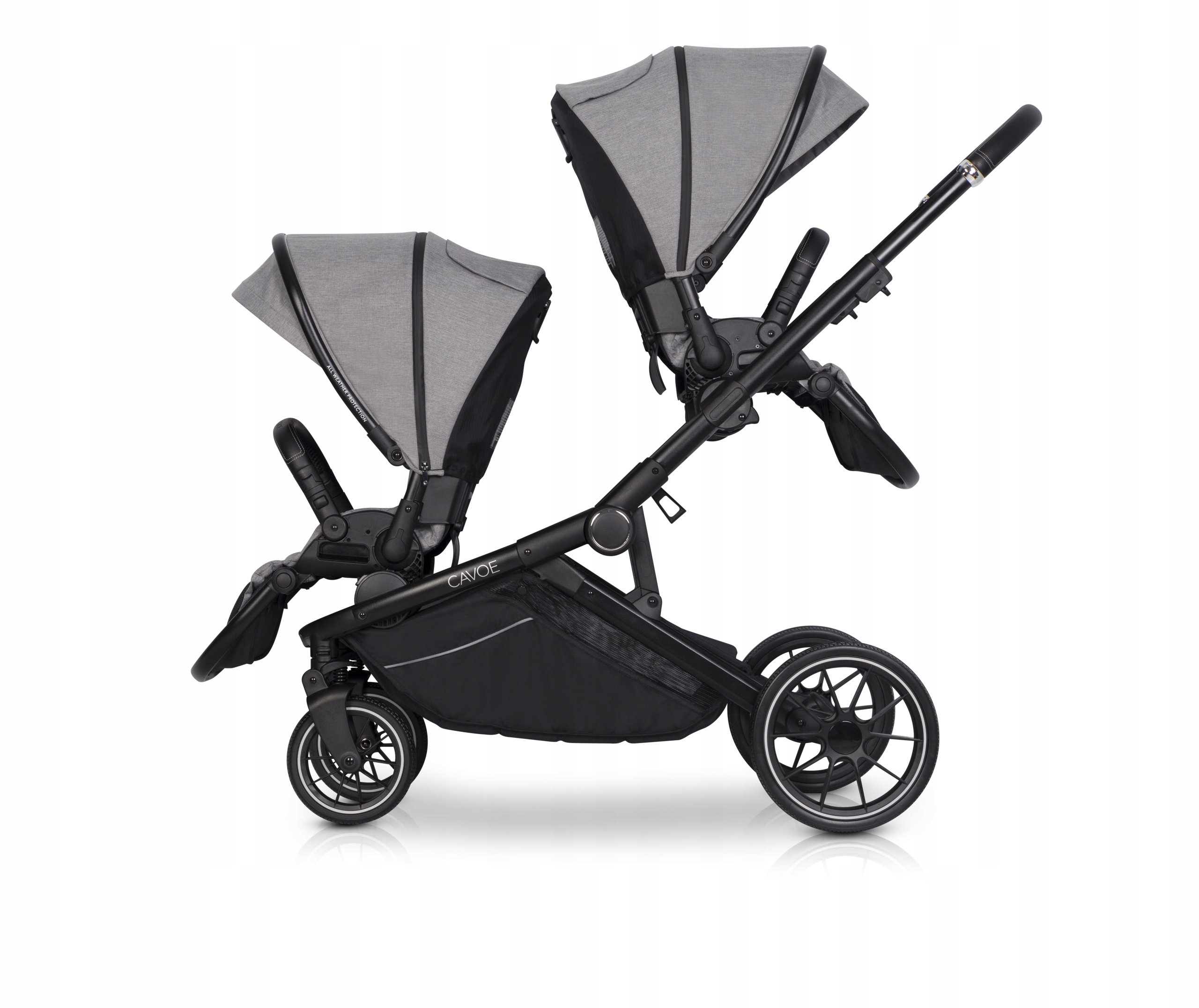 AVEC marki CAVOE jest wózkiem dla dwójki dzieci typu tandem. Oferowany jest jako wózek spacerowy z dwoma pełnowymiarowymi siedziskami z możliwością dokupienia jednej lub dwóch pełnowymiarowych gondoli. Dodatkowo marka CAVOE oferuje możliwość dokupienia uniwersalnych adapterów, za pomocą, których możesz wpiąć jeden lub dwa foteliki samochodowe CAVOE 0+ Isofix Ready lub wybrane foteliki innych znanych światowych marek w tym Maxi Cosi, Cybex i Avionaut.