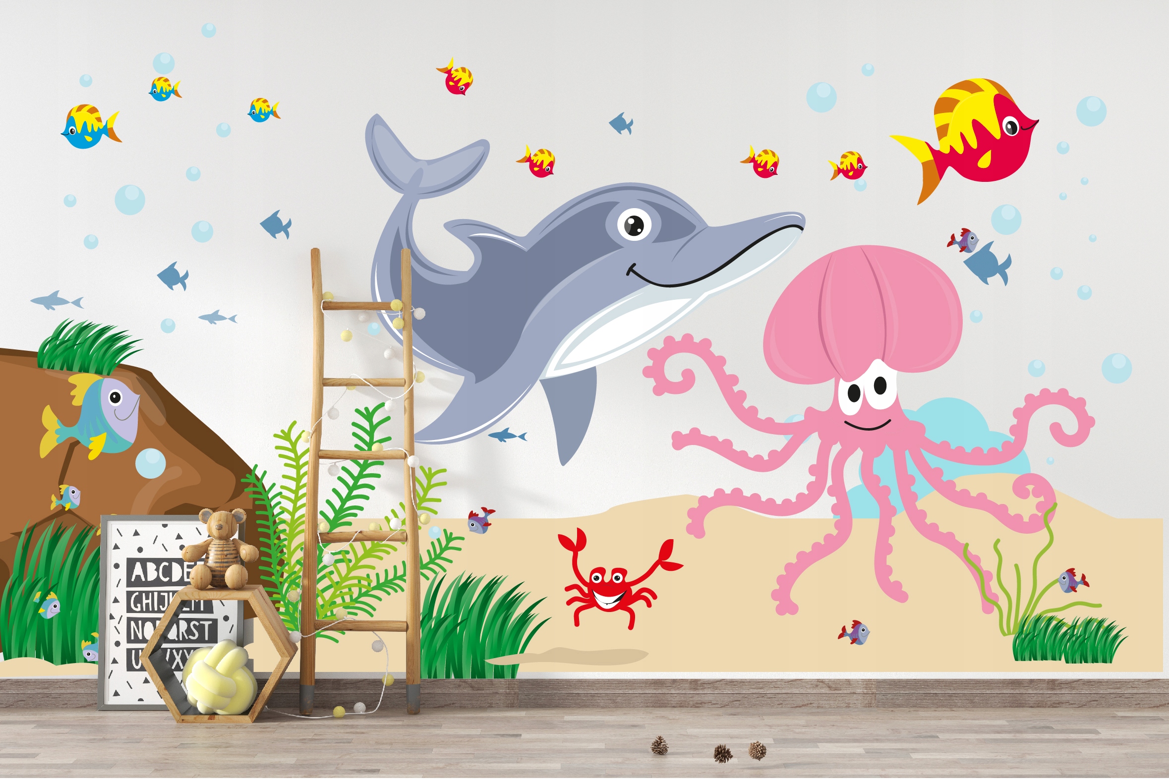 Naklejki mają żywe kolory, tusze których używam spełniają normy dla zabawek dla dzieci jak również na tapety do wnętrz. Technologia druku HP LATEX.