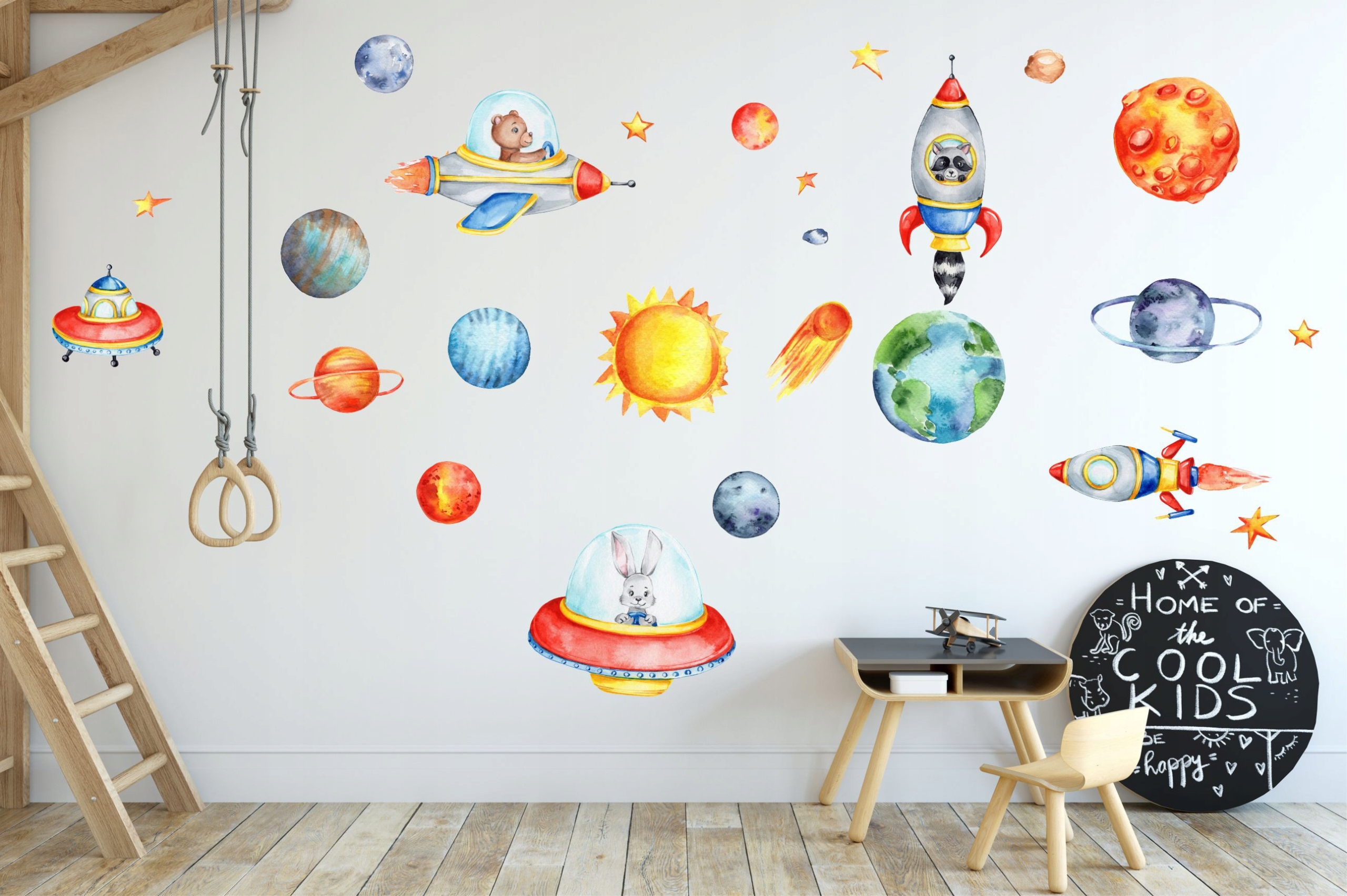 Naklejki mają żywe kolory, tusze których używam spełniają normy dla zabawek dla dzieci jak również na tapety do wnętrz. Technologia druku HP LATEX.