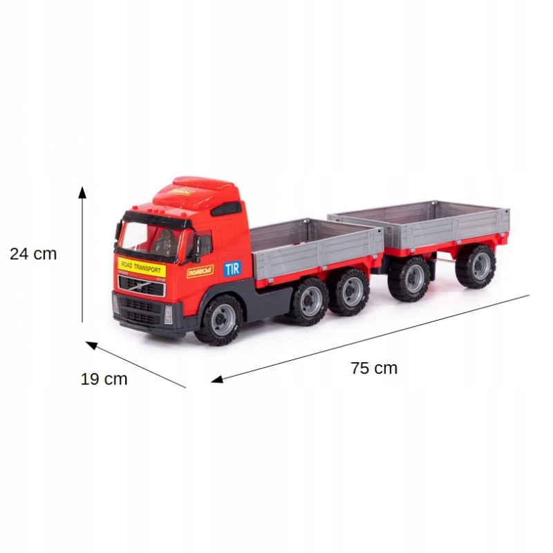 Wspaniała, ogromna ciężarówka z przyczepą firmy Wader QT wywoła uśmiech na twarzy każdego malucha. Idealny prezent na każdą okazję. Produkt wykonany z najwyższej jakości tworzywa. Charakteryzuje się bardzo dobrą konstrukcją i dużą wytrzymałością. Idealny do zabawy zarówno w domu jak i na zewnątrz. Pojazd został wykonany na licencji Volvo, a jego długość osiąga 75cm