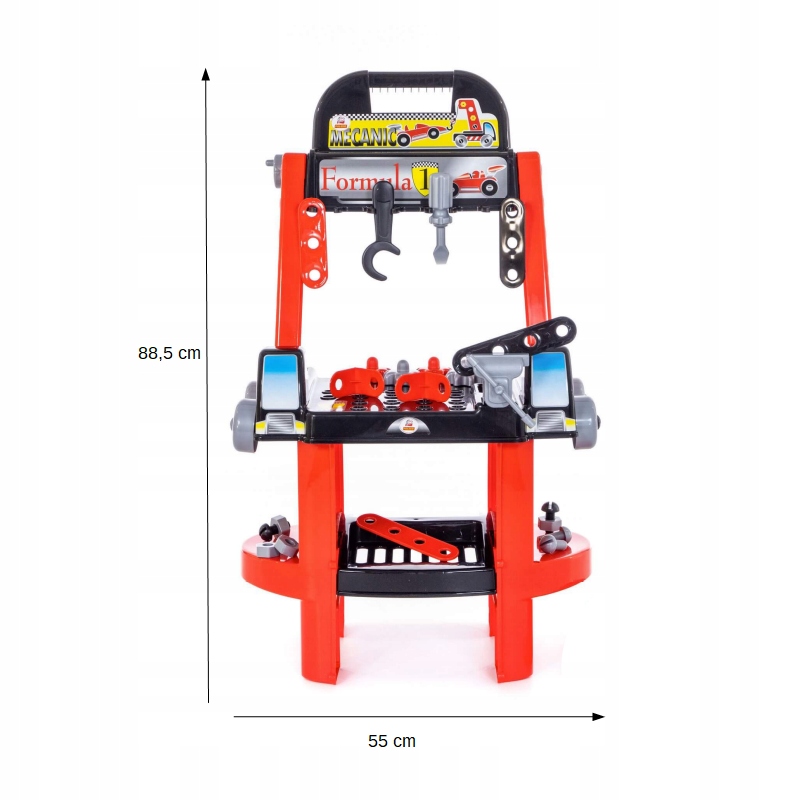 - Wymiary produktu: 55х40,5х88,5 (cm) - zestaw mechanik45х20х24 (cm) - samochód z bartami