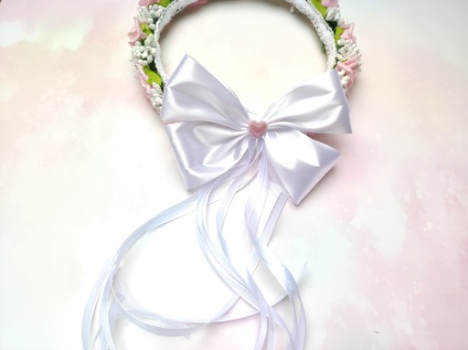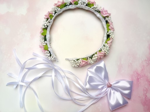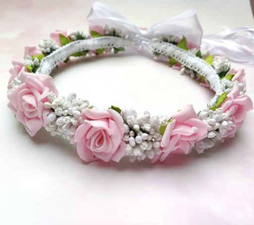 Вінок ручної роботи з квітами з пінопласту та квітковими аксесуарами. Квіти виглядають дуже реалістично, завдяки чому дівчина виглядає ніжною та елегантною в день Святого Причастя.