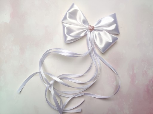 Зсередини все оздоблено білим мереживом, а ззаду великий бант із атласної стрічки з рожевим серцем.