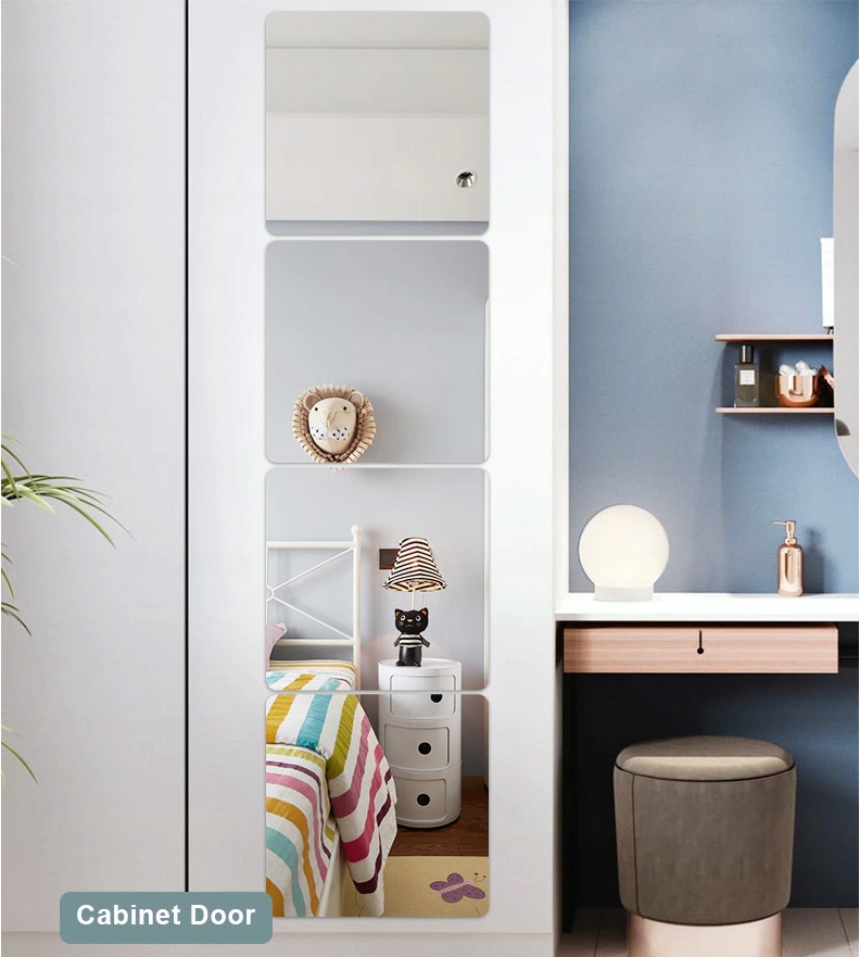 Każdy element ma od spodu powierzchnię samoprzylepną, a strona lustrzana jest zabezpieczona ochronną folią.