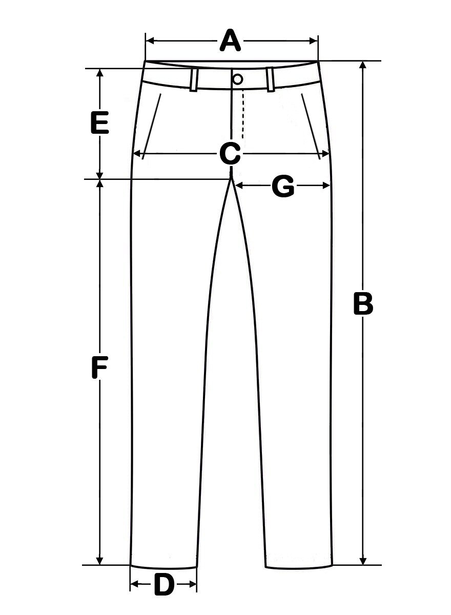 NALEŻY PORÓWNAĆ WYNIKI SWOICH POMIARÓW Z WARTOŚCIAMI (od A do G) podanymi w aukcji i przy rysunku spodni z wymiarami.