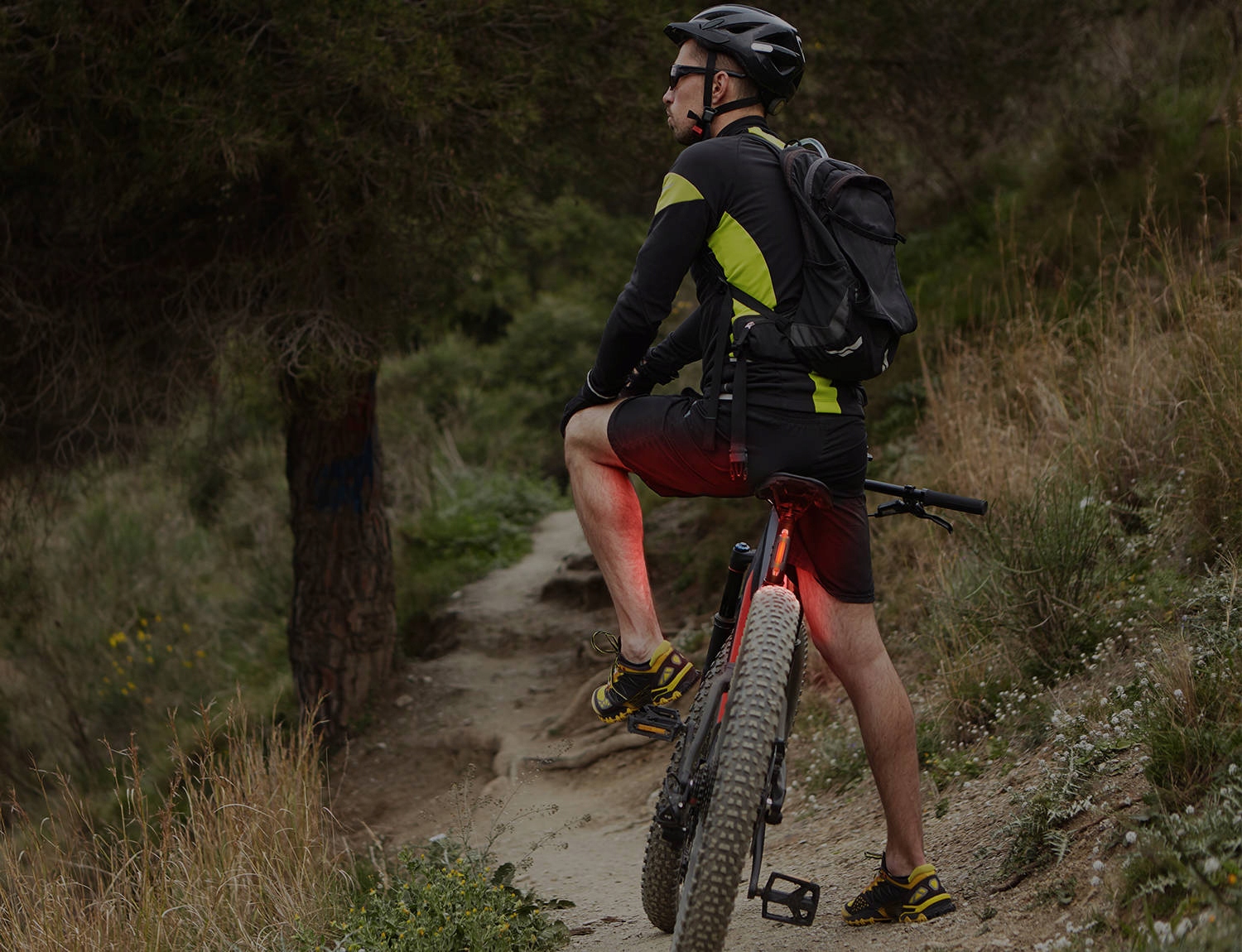 Tylna lampka posiada 4 tryby świecenia: