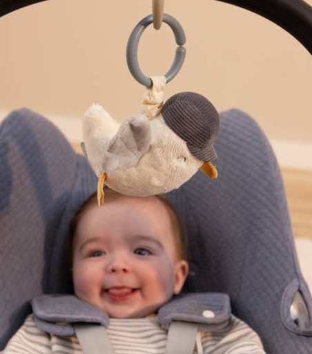 Вібраційна чайка Джек від Little Dutch з колекції Sailors Bay.Коли ви тягнете чайку, вона починає вібрувати, що подобається малечі. Це надзвичайно цікаво для дитини, завдяки кільцю його легко закріпити на автокріслі або колясці-гондолі. Вона надзвичайно мила і ніжна. Це ідеальне поєднання з іншими продуктами з колекції Sailors Bay.