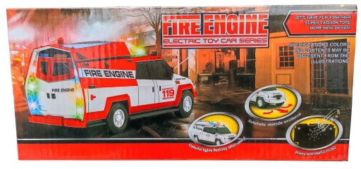 Реалістична пожежна машина на акумуляторі зі світловими та звуковими ефектами. Після встановлення акумуляторів автомобіль їде, загоряється та подає сигнал пожежної охорони.