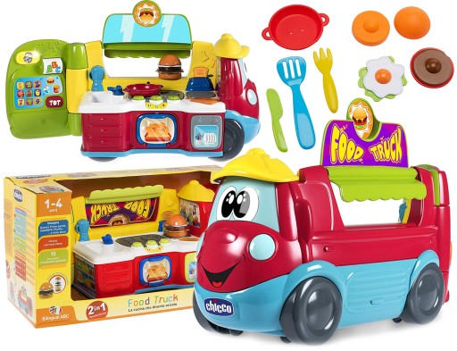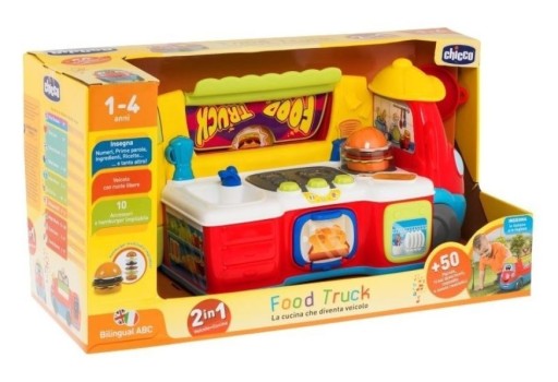 Chicco Food Truck - це розвиваюча мовна іграшка, а це означає, що ця захоплююча розвага неминуче супроводжується солідною порцією навчання та підготовки до кращого та легшого засвоєння іноземних мов у майбутньому. Автомобіль видає понад 50 слів, смішних фраз, мелодій і реальних звуків, типових для кухні. Все це, звісно, у двох мовних версіях!