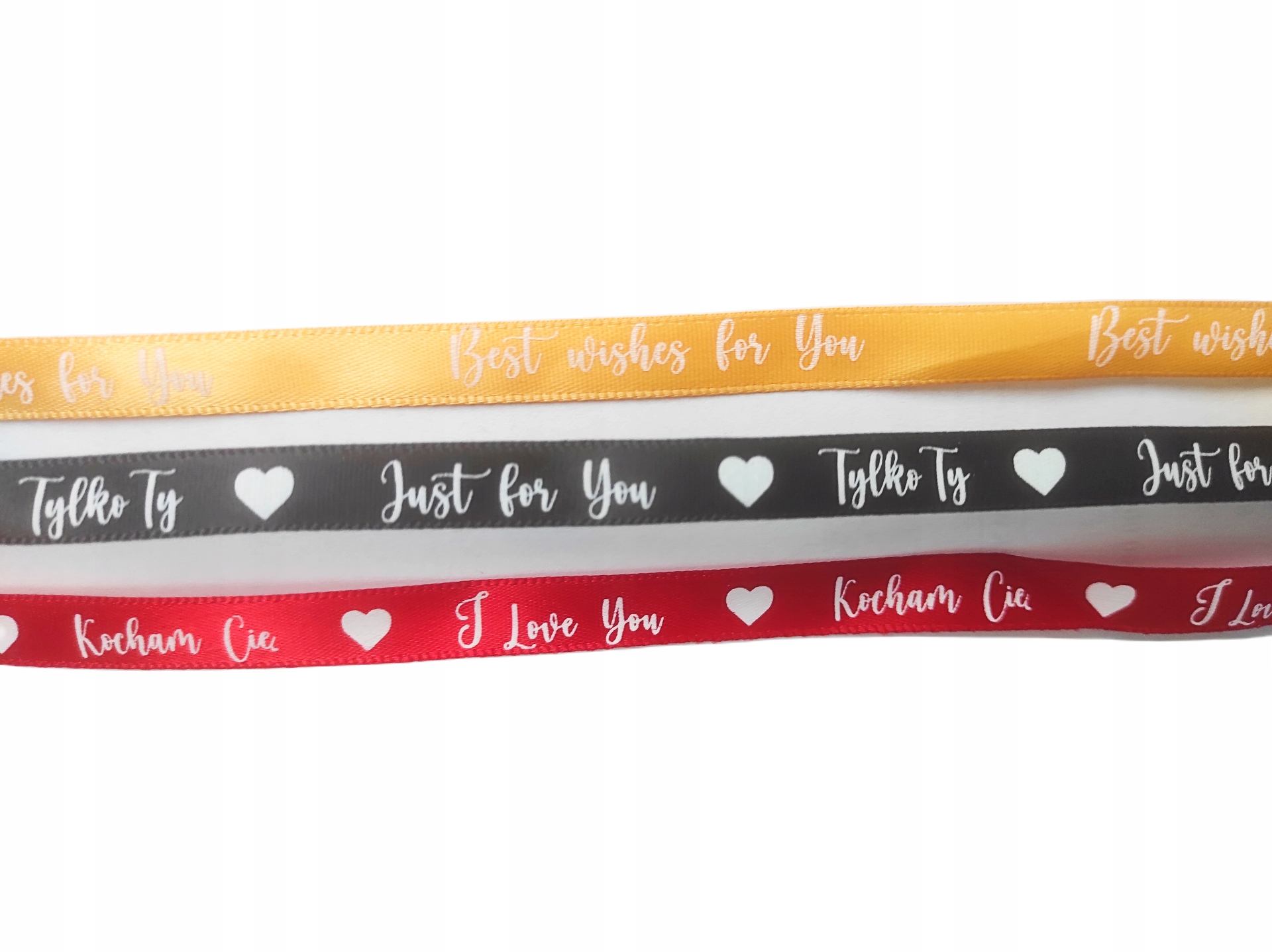 Do zestawu dołączone są 3 wstążki odpowiednie na każdą okazję. Na wstążkach umieszczone są różnego rodzaju dedykacje