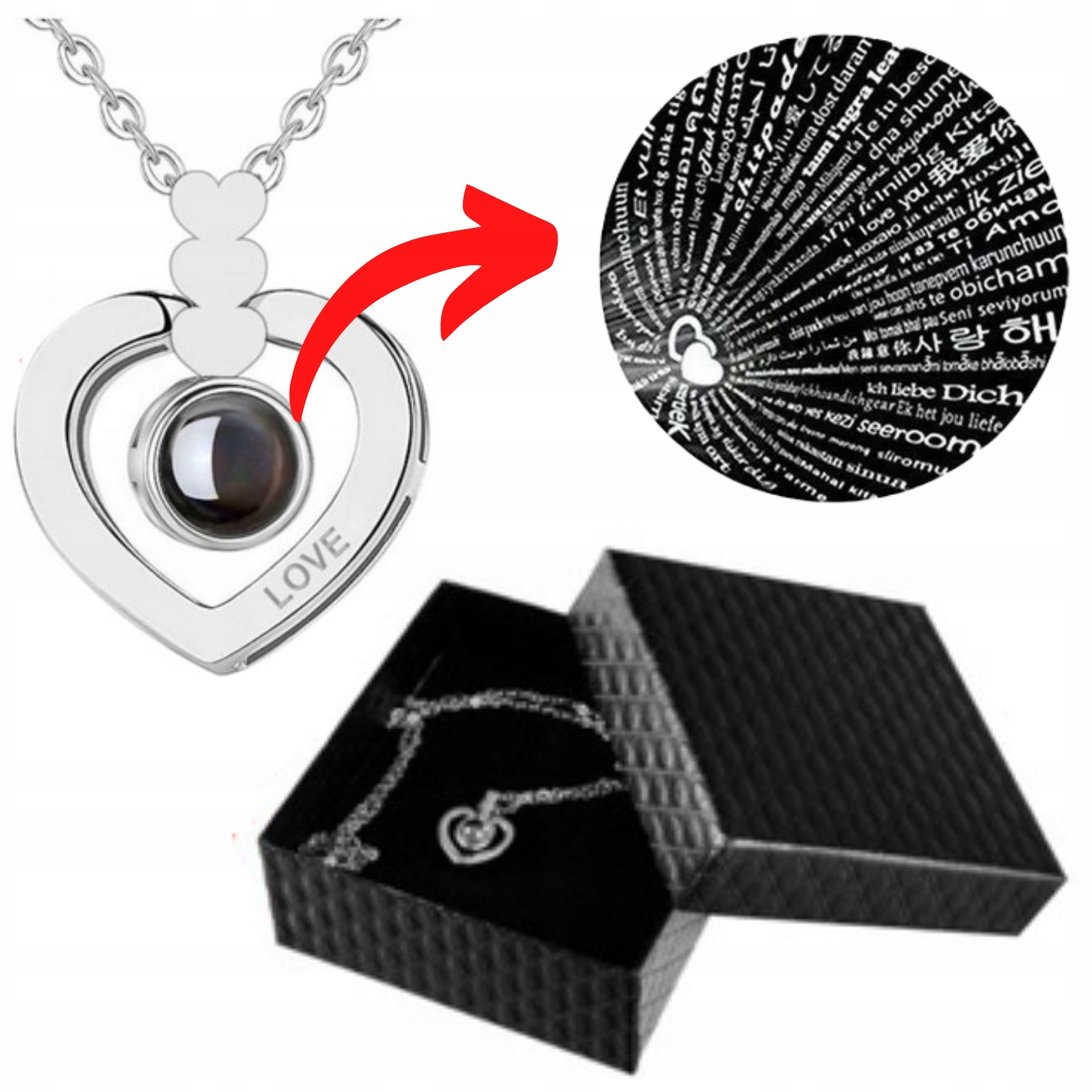 ✅NASZYJNIK Z HOLOGRAMEM W 100 JĘZYKACH "KOCHAM CIĘ"