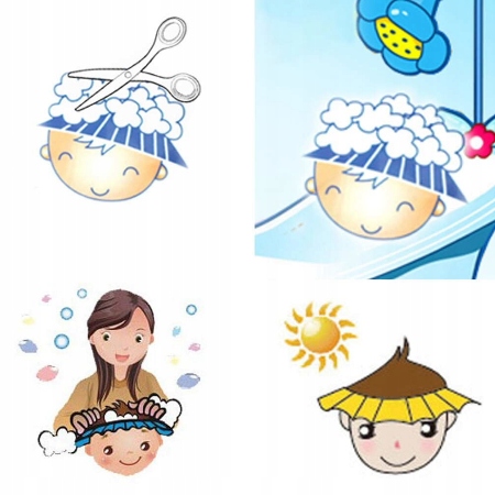 It protects the child's face and ears against water running off the head.