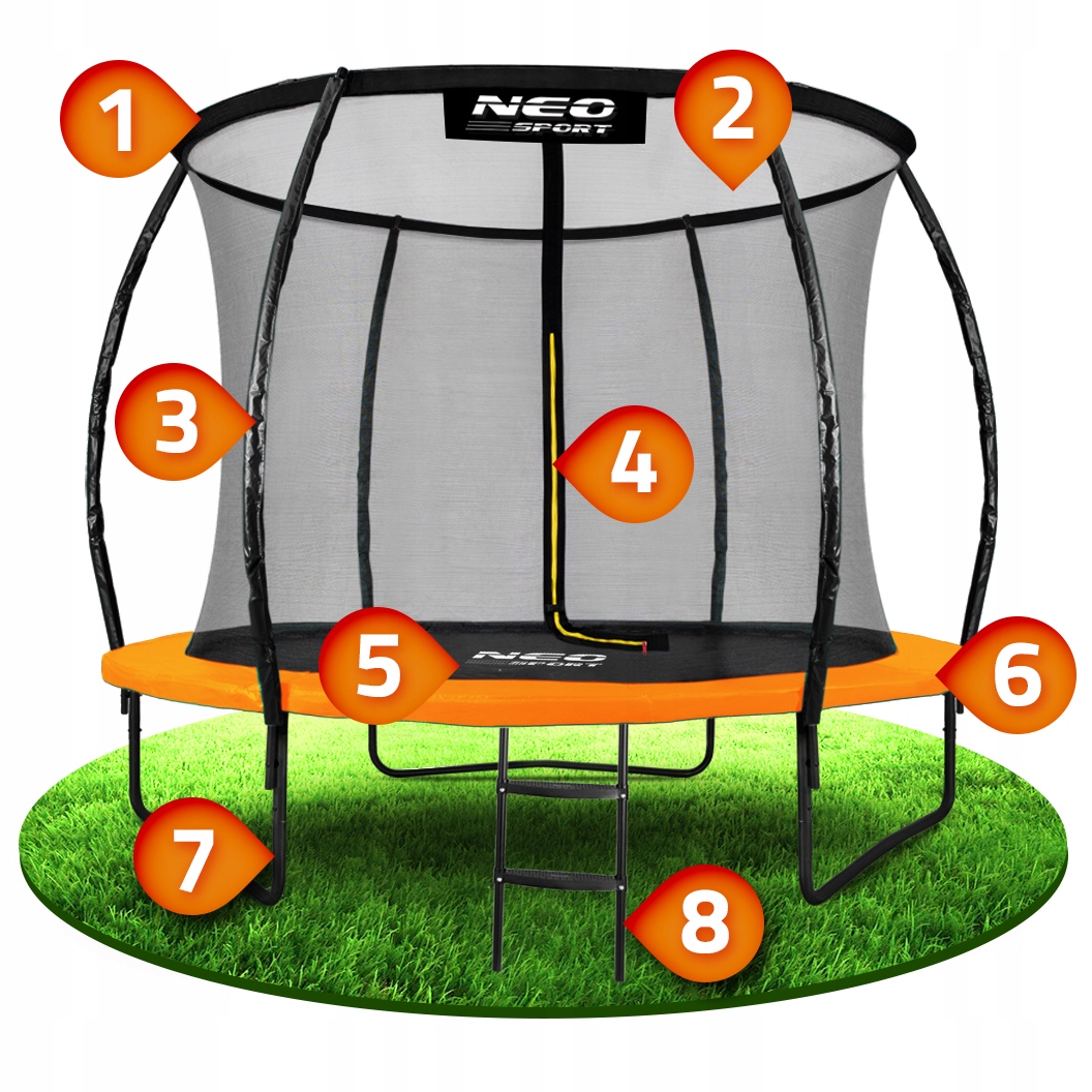 - trampolina 252 cm (8ft) na 3 podwójnych nogach,