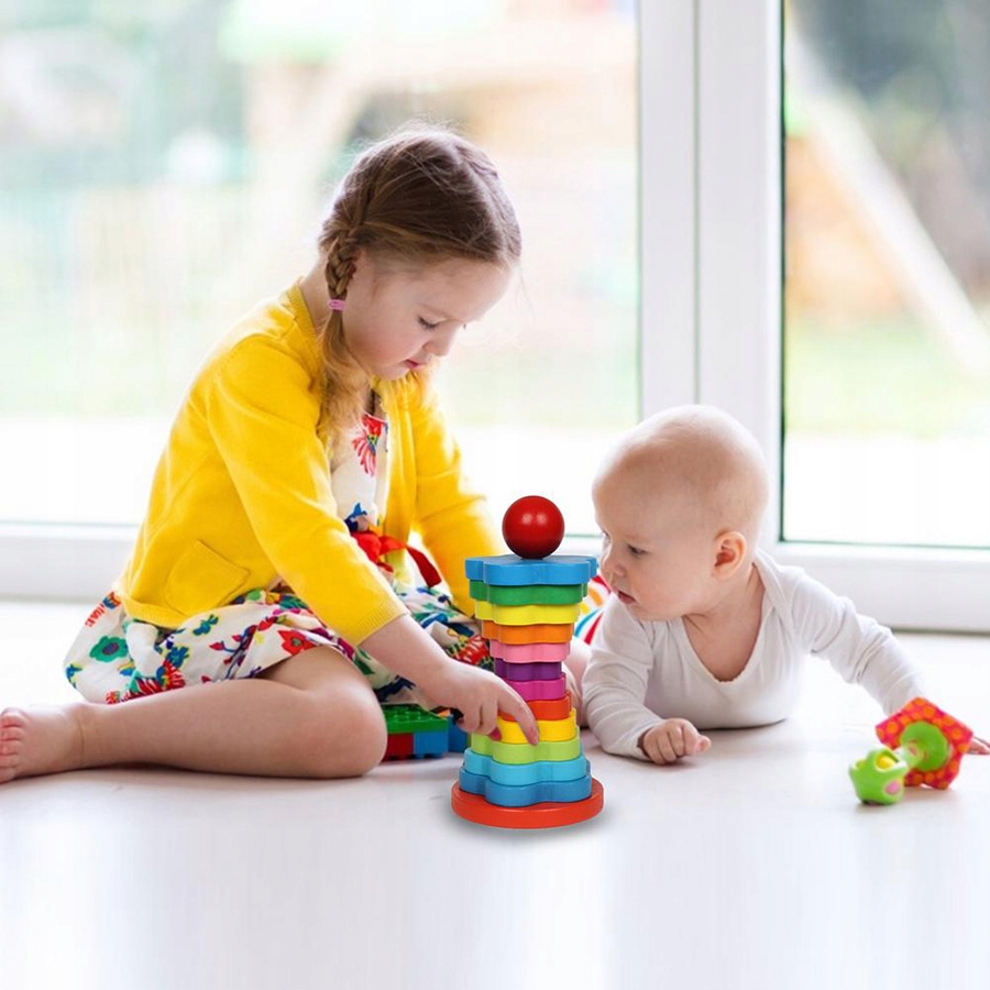 Sorter drewniany dla dzieci - Kolorowa wieża jest zabawką uzupełniającą dziecięcą edukacje i rozwój. Jest tym, czego Twój maluch potrzebuje. Dzięki sorterowi w maluch poznaje różnorodne kształty oraz kolory. Dopasowuje je, uczy się ich, a dodatkowo ma doskonałą zabawę. Drewniane wykonanie powoduje, że jest to produkt wytrzymały i wysokiej jakości. Kolorowe okrągłe klocki powodują, że dziecko nie może oderwać od nich rąk.