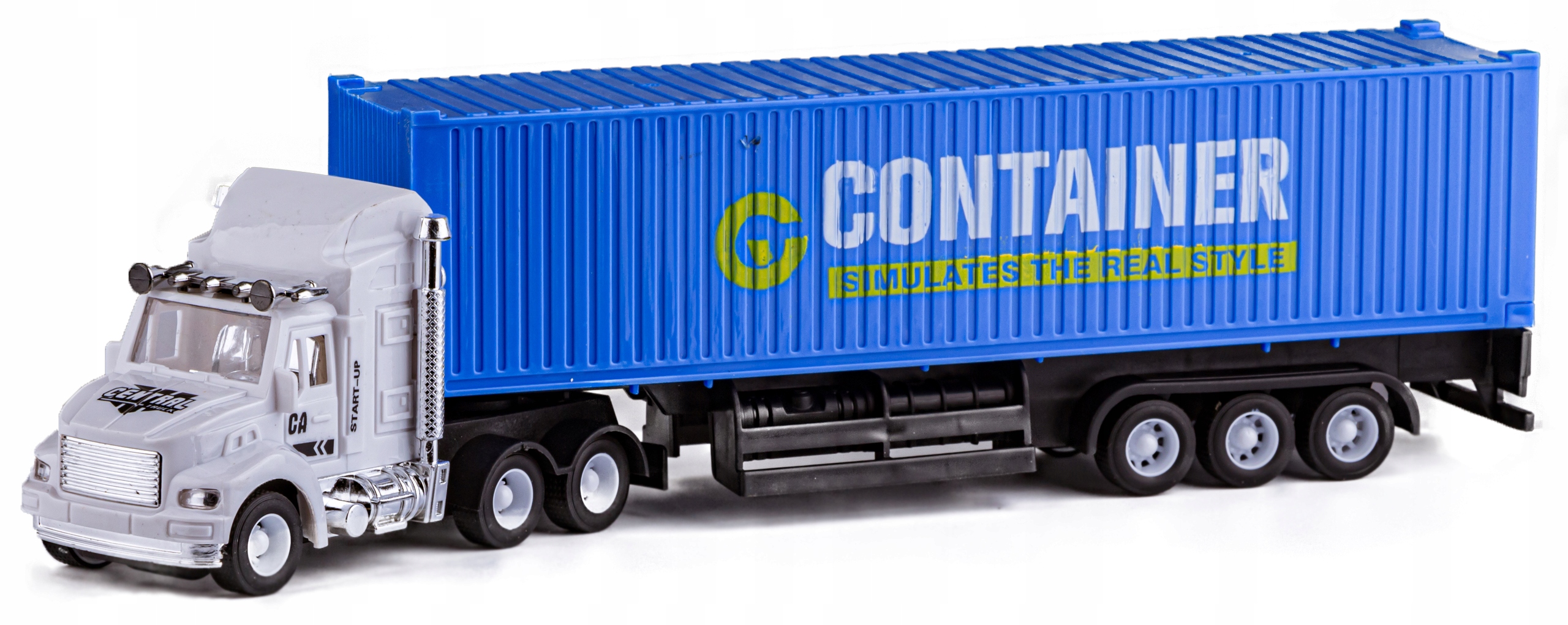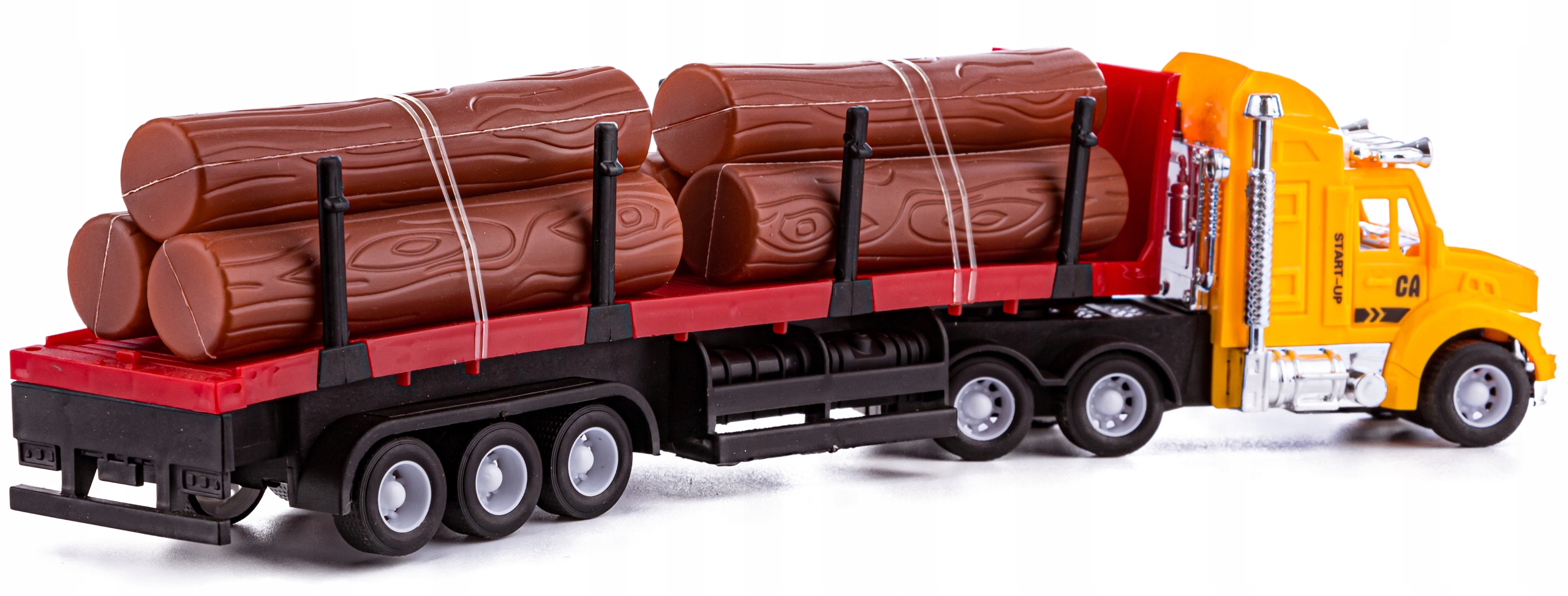 Each truck has detachable trailers. Thanks to this, we can freely mix the combination of trucks or completely put the trailer aside, e.g. for loading. The semi-trailer with a container has an opening rear door, the tanker looks like a real one and the semi-trailer is ideal for transporting timber. Several beams are included in the kit.