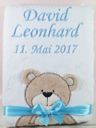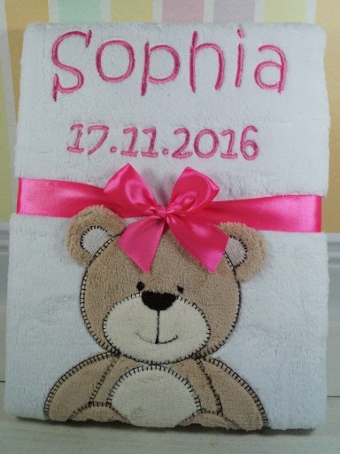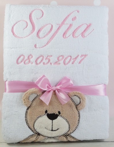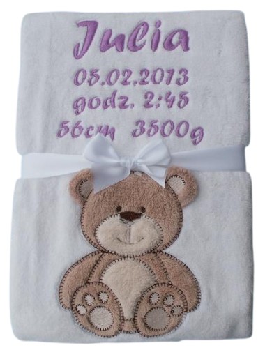 КОВДРА З ІМЕНЕМ - біла з ведмедиком