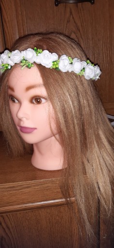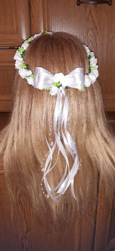 Новий регульований білий вінок для причастя з дзвіночками без тюлю з двома відтінками зеленого та атласним бантом із сердечками на жилках.