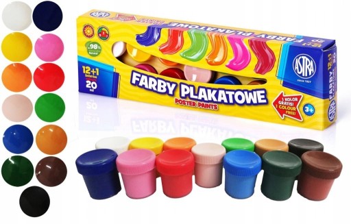 ПЛАКАТНІ ФАРБИ ASTRA 13 КОЛЬОРІВ - 20 МЛ 12+1 КОЛІР БЕЗКОШТОВНО