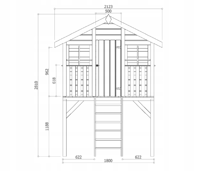 - Przekrój słupka (nogi) domku: 70 x 70 mm