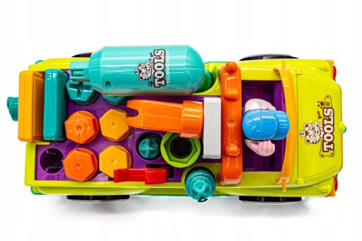 Автомобіль, що обертається, є ідеальною іграшкою для маленьких любителів своїми руками. Цей набір розвиває творчі здібності, логічне мислення та ручні навички. У набір входить багато предметів, серед яких: шурупи, молоток, викрутка, гайковий ключ.
